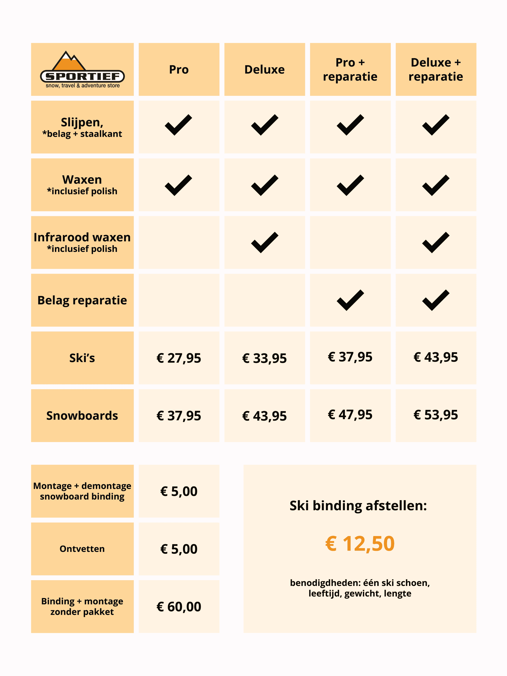 Ski-en snowboardonderhoud van 1 november tot 30 april